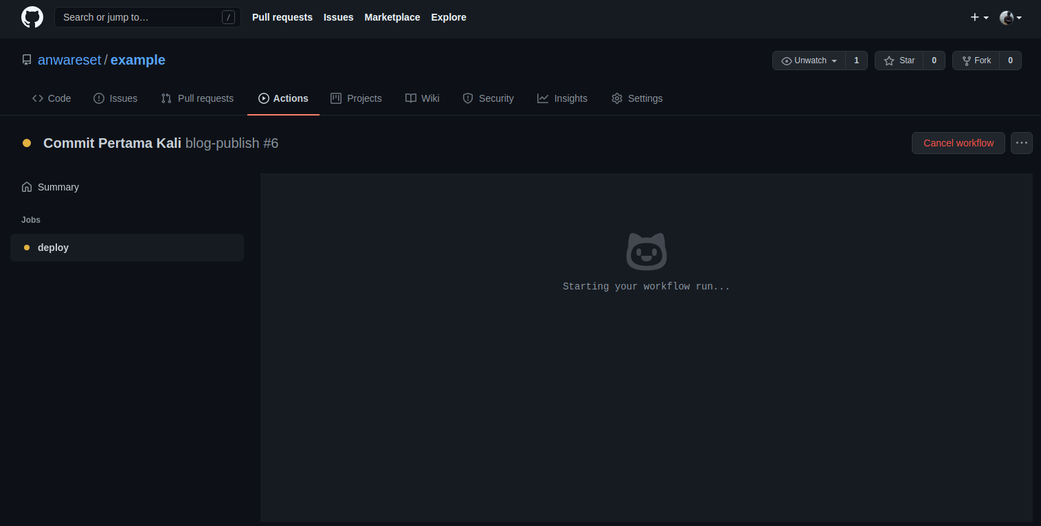 Jika berhasil, maka seharusnya proses deployment melalui Github Actions akan langsung berjalan seperti berikut.