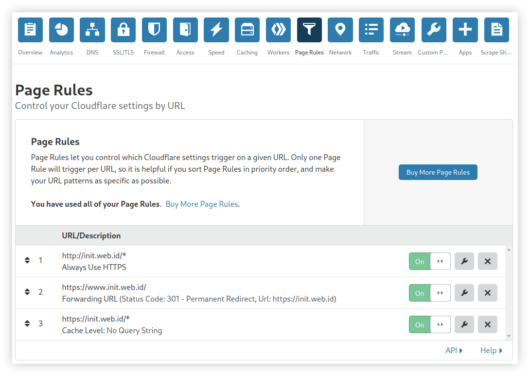 Selanjutnya buka Page Rules untuk membuat 3 rules baru bagi domain kita.
