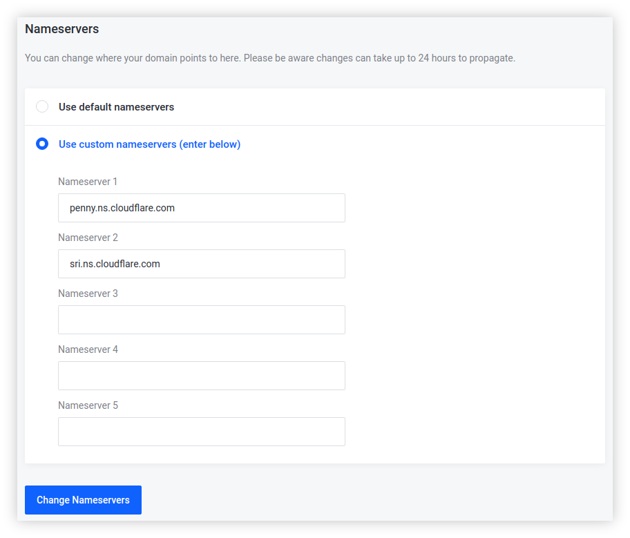 Yang perlu dicatat adalah nameserver yang telah kita dapatkan dari Cloudflare, seperti berikut.