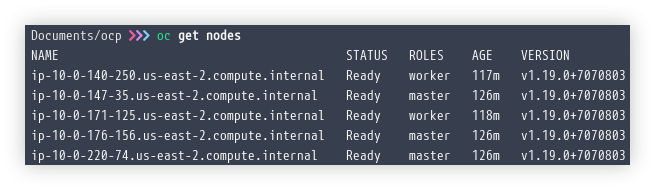 Di sini saya telah memiliki klaster OpenShift 4 dari hasil instalasi dengan metode IPI seperti yang telah saya tulis pada artikel sebelumnya (Quick Install OKD 4 di AWS). Dan pastikan bahwa OpenShift dapat dikelola dari komputer lokal kita menggunakan perintah oc atau origin-client.