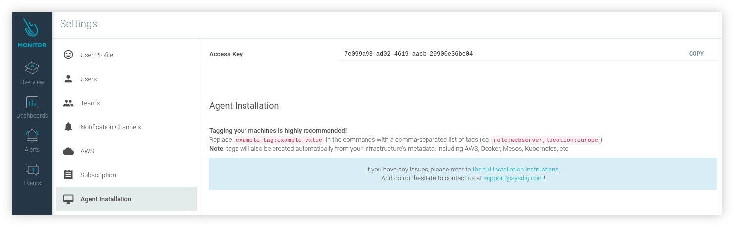 Kemudian, pilih Agent Installation maka akan terdapat Access Key yang nanti akan kita gunakan.