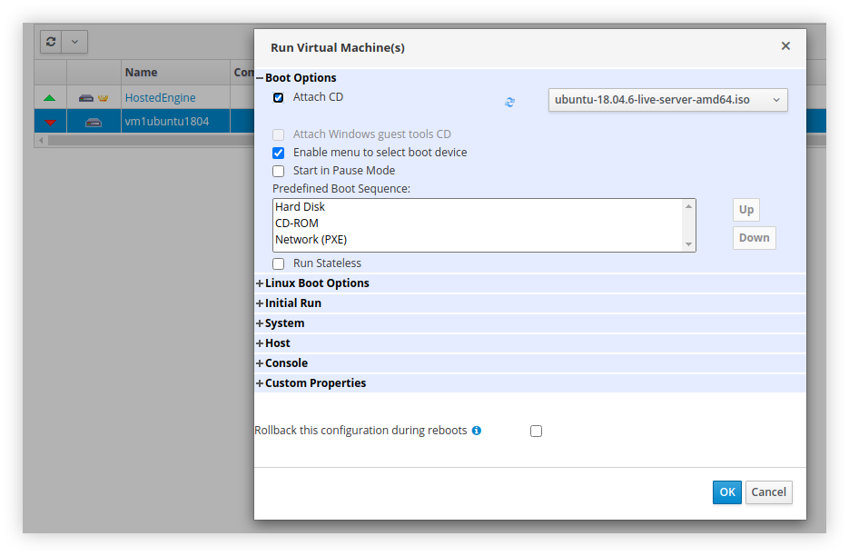 pacman. Silahkan sesuaikan dengan distro yang kalian gunakan.Berikut ini adalah tampilan dari VM yang berjalan di atas oVirt, sedang menjalankan instalasi Ubuntu Server menggunakan ISO yang telah kita upload ke Storage Domain lewat NFS.