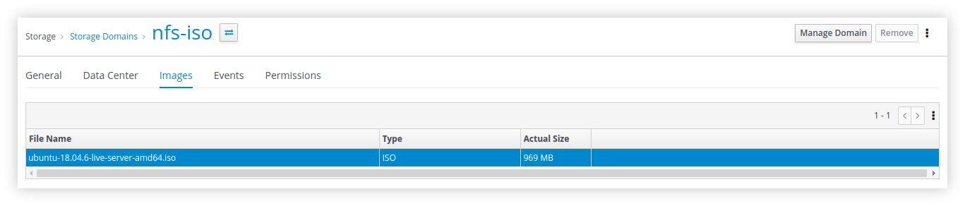 Coba lihat dari sisi oVirt Webmanager apakah file ISO sudah muncul seberti berikut ini.